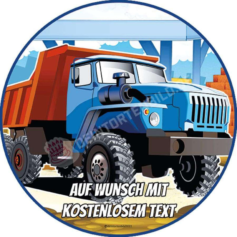 Cake topper construction site dump truck 20cm circle