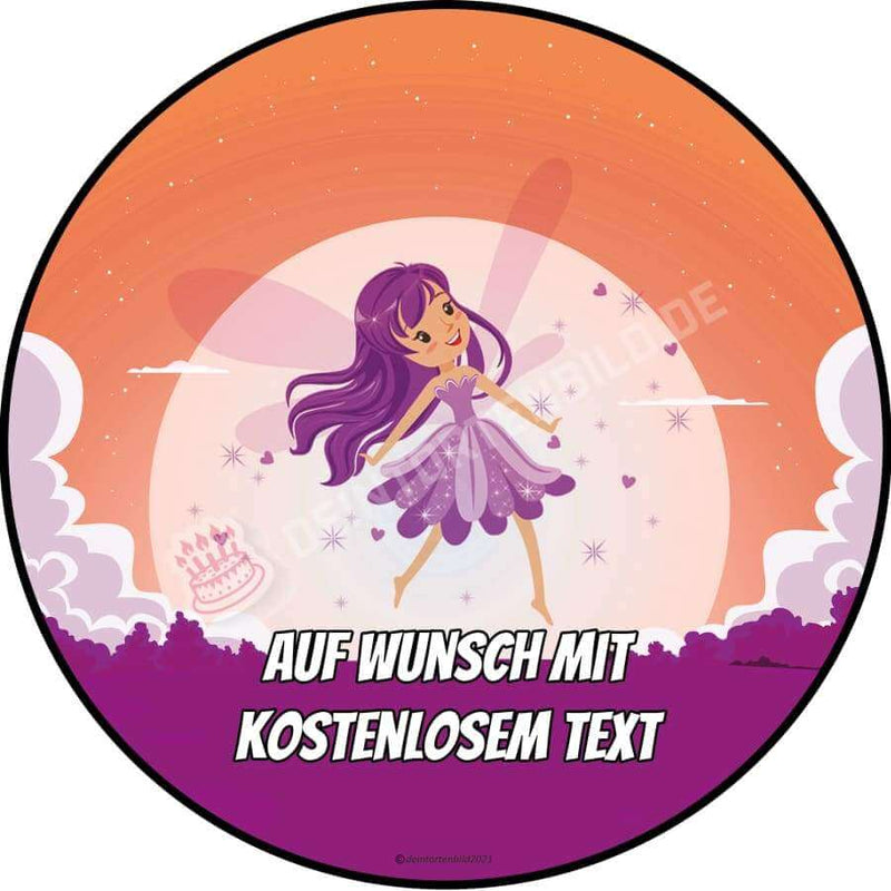 Cake topper cartoon fairy purple in 20cm circle