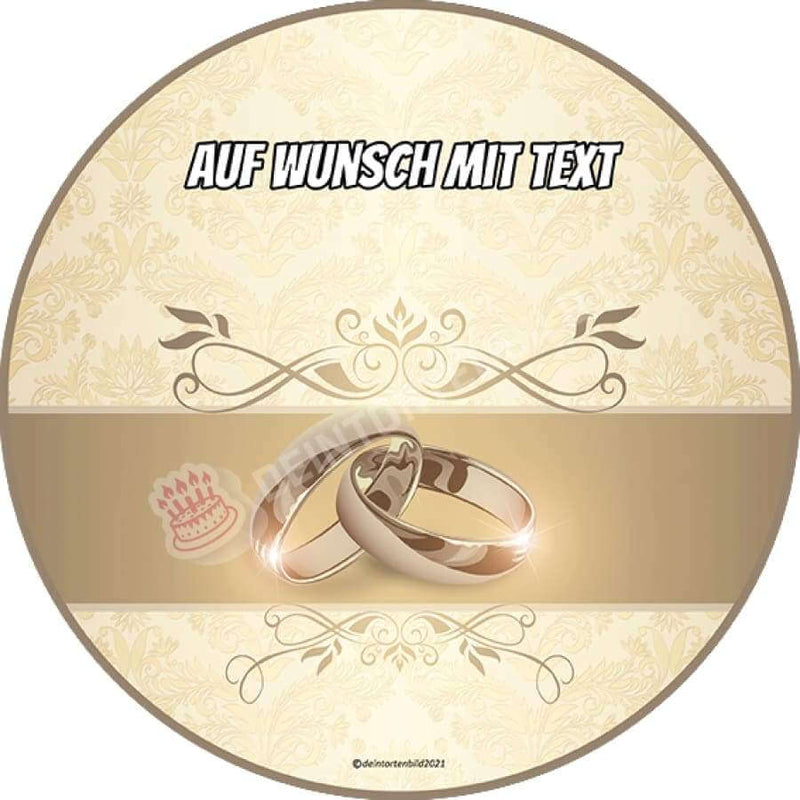 Wedding cake topper - Golden wedding rings in 20x20cm circle