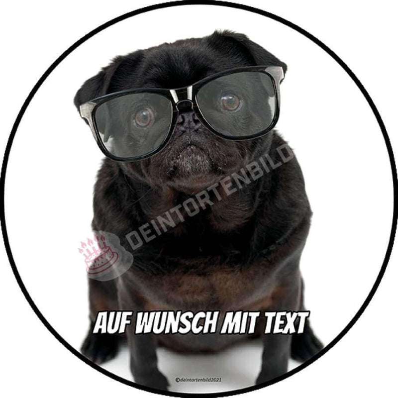 Motiv: Mops mit Brille - Hochwertige und individuelle Tortenaufleger für jeden Anlass