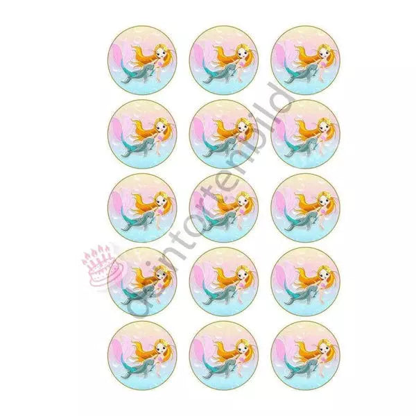 Muffin topper Mermaid Dolphin in 5cm circle