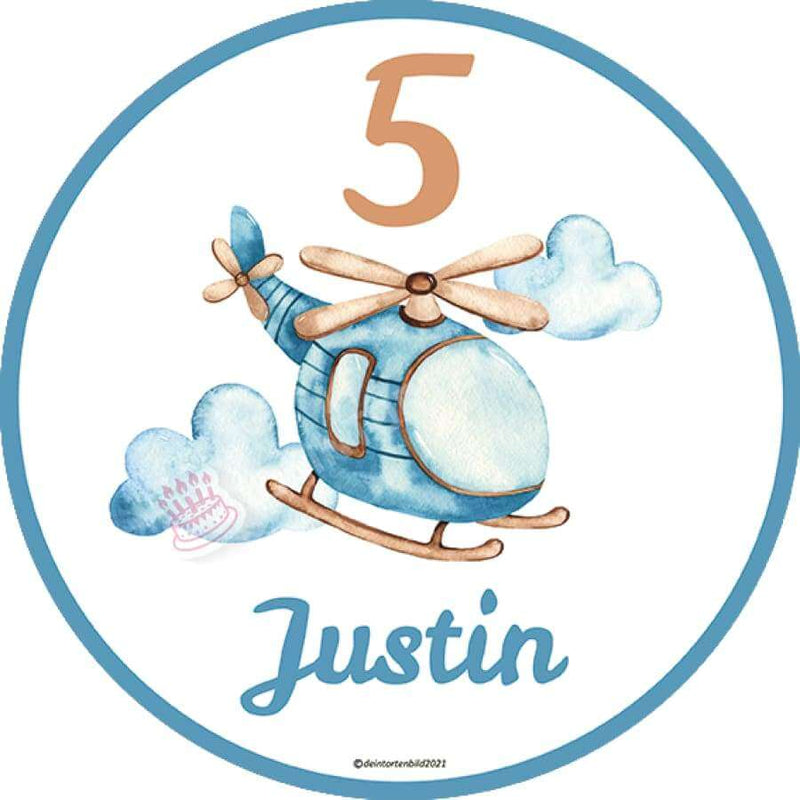 Motiv: Kleiner Hubschrauber - Name und Zahl anpassbar - Deintortenbild.de Tortenaufleger aus Esspapier: Oblatenpapier, Zuckerpapier, Fondantpapier