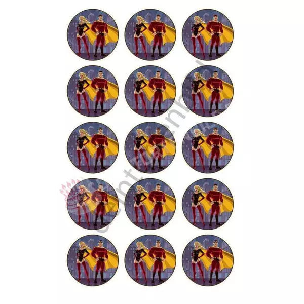 Muffin topper superheroes in 5cm circle