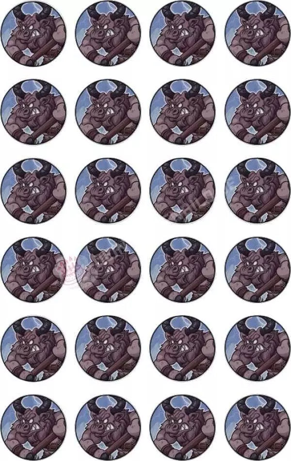 Muffin Topper Fantasy - Cartoon Minotaur in 4cm Circle
