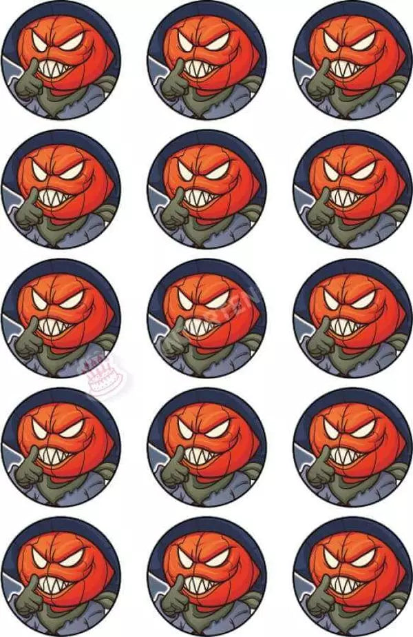 Muffin topper Halloween - Cartoon pumpkin head in 5cm circle