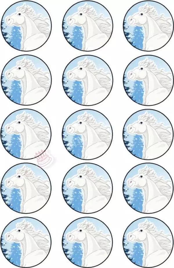 Muffin topper white horse in 5cm circle