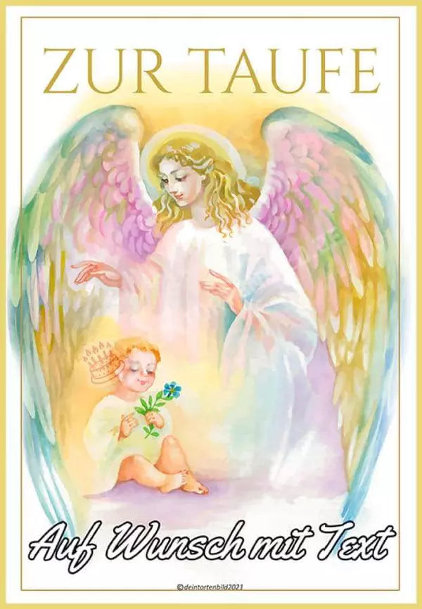 Cake topper baptism - angel guards boy in 26cm x 18cm rectangle